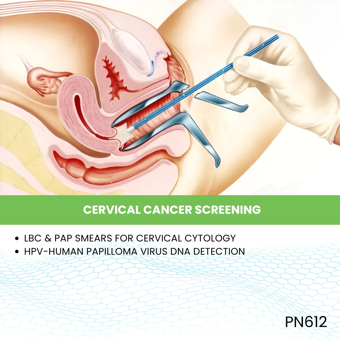 Cervical cancer screening is a preventive test designed to detect precancerous changes and early-stage cervical cancer in women. It is usually performed using a Pap smear (cytology), HPV (human papillomavirus) testing, or a combination of both. Early detection significantly reduces the risk of developing invasive cervical cancer and improves treatment outcomes.