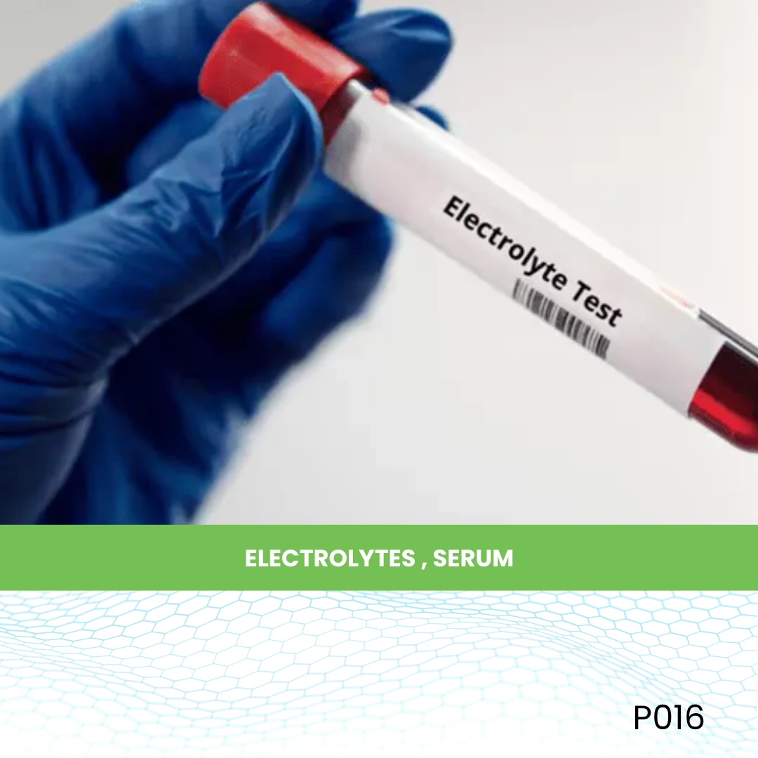 The Electrolytes, Serum test measures the levels of key electrolytes—sodium, potassium, and chloride—in the blood. These minerals play a critical role in maintaining fluid balance, nerve conduction, muscle function, and acid–base equilibrium. Abnormal levels may indicate dehydration, kidney problems, hormonal imbalances, or metabolic disorders.