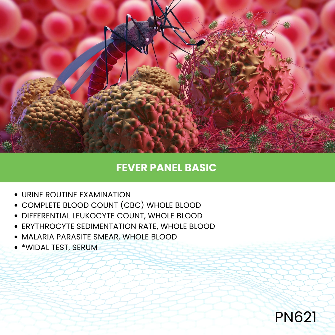 The Fever Panel Basic is a group of essential blood tests designed to screen for common causes of acute fever. Since fever can be caused by infections ranging from viral to bacterial and parasitic, this panel helps doctors quickly narrow down the underlying reason and guide initial treatment.