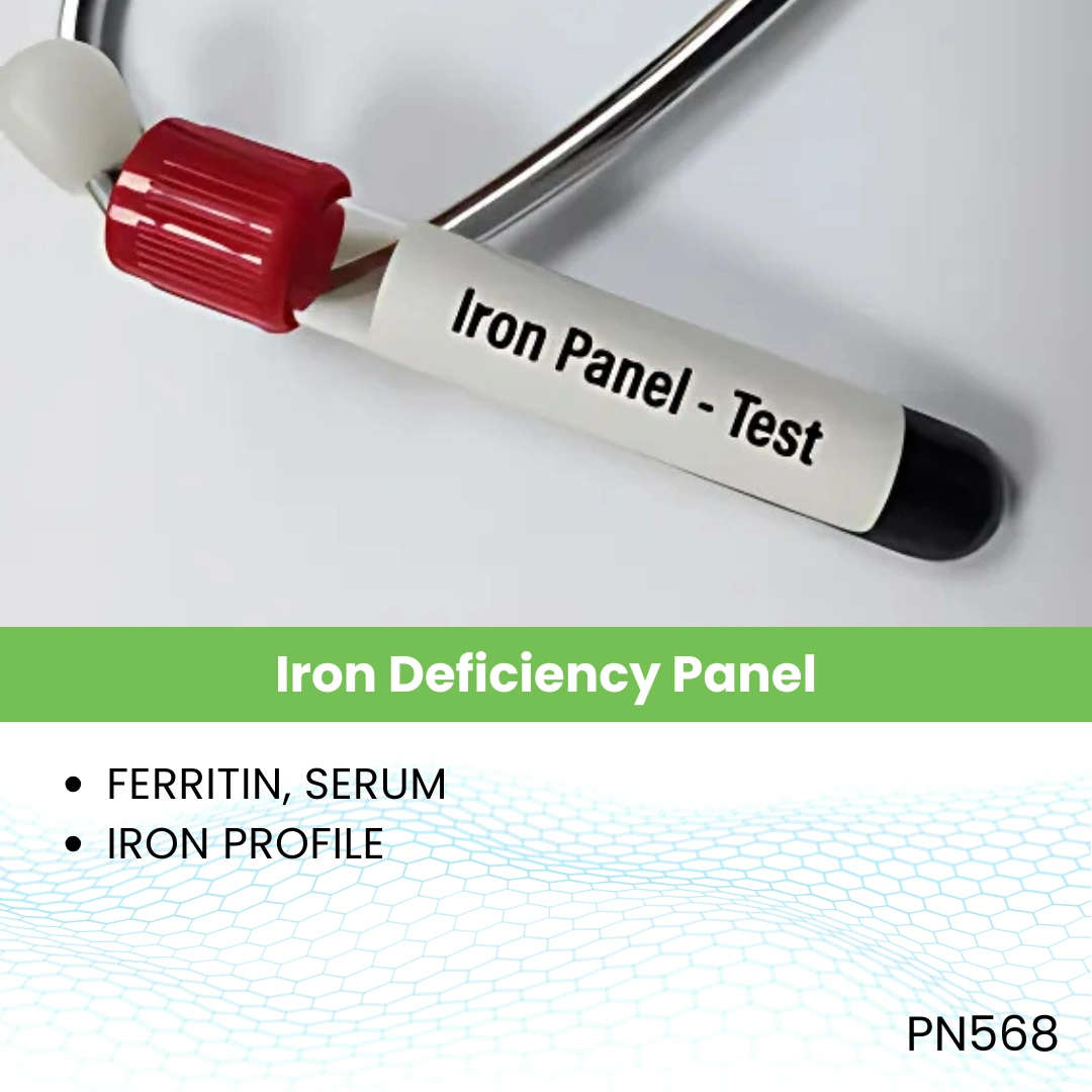 The Iron Deficiency Panel is a group of blood tests that evaluate the amount of iron in the body and how it is being used. This panel typically includes serum iron, ferritin, total iron-binding capacity (TIBC), and transferrin saturation. Together, these tests help assess iron storage, transport, and availability, providing a complete picture of iron status and identifying iron deficiency or overload.
